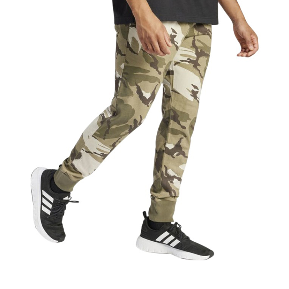 - Embrace everyday adventures with style in the adidas Men’s Seasonal Essentials Camouflage Sweatpants, featuring a playful allover camo print and cotton-blend fabric crafted from recycled materials for all-day comfort and sustainability.