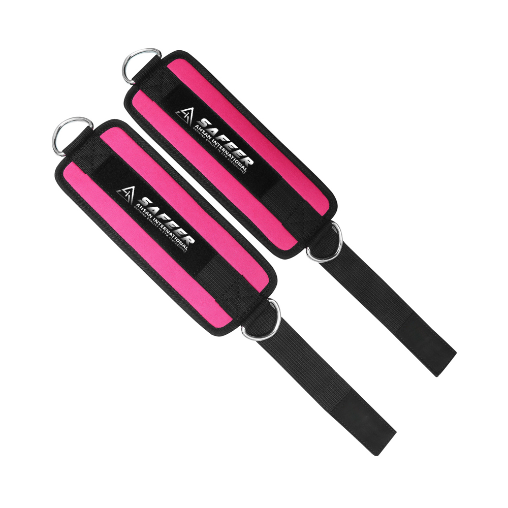 Safeer Ahsan International Ankle Straps: Engineered for cable machine workouts, our ankle straps provide secure support and comfort for glute, leg, and hip exercises. Constructed with durable neoprene padding and heavy-duty D-rings, they ensure maximum stability, reduce discomfort, and allow athletes to train with precision and control. Perfect for strength training, toning, and functional fitness routines.