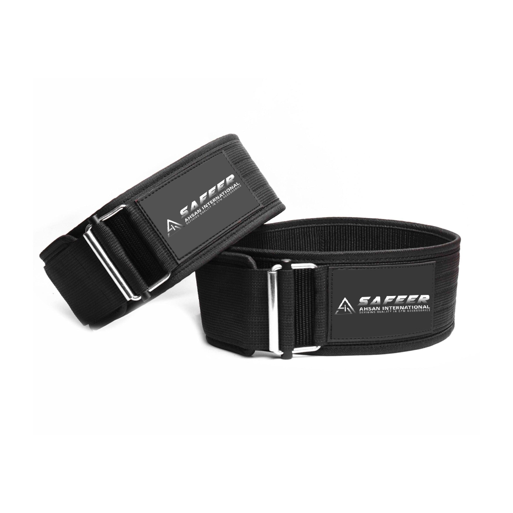 Safeer Ahsan International Non-Leather Weightlifting Belt : Engineered for performance and comfort, our non-leather belt is crafted from durable nylon with reinforced stitching and a secure Velcro or buckle closure. Lightweight yet supportive, it provides excellent core stability and lumbar protection during weightlifting, CrossFit, and functional fitness training. Designed for flexibility and ease of use, this belt delivers reliable support without the bulk of traditional leather belts, making it ideal for athletes seeking comfort and mobility.